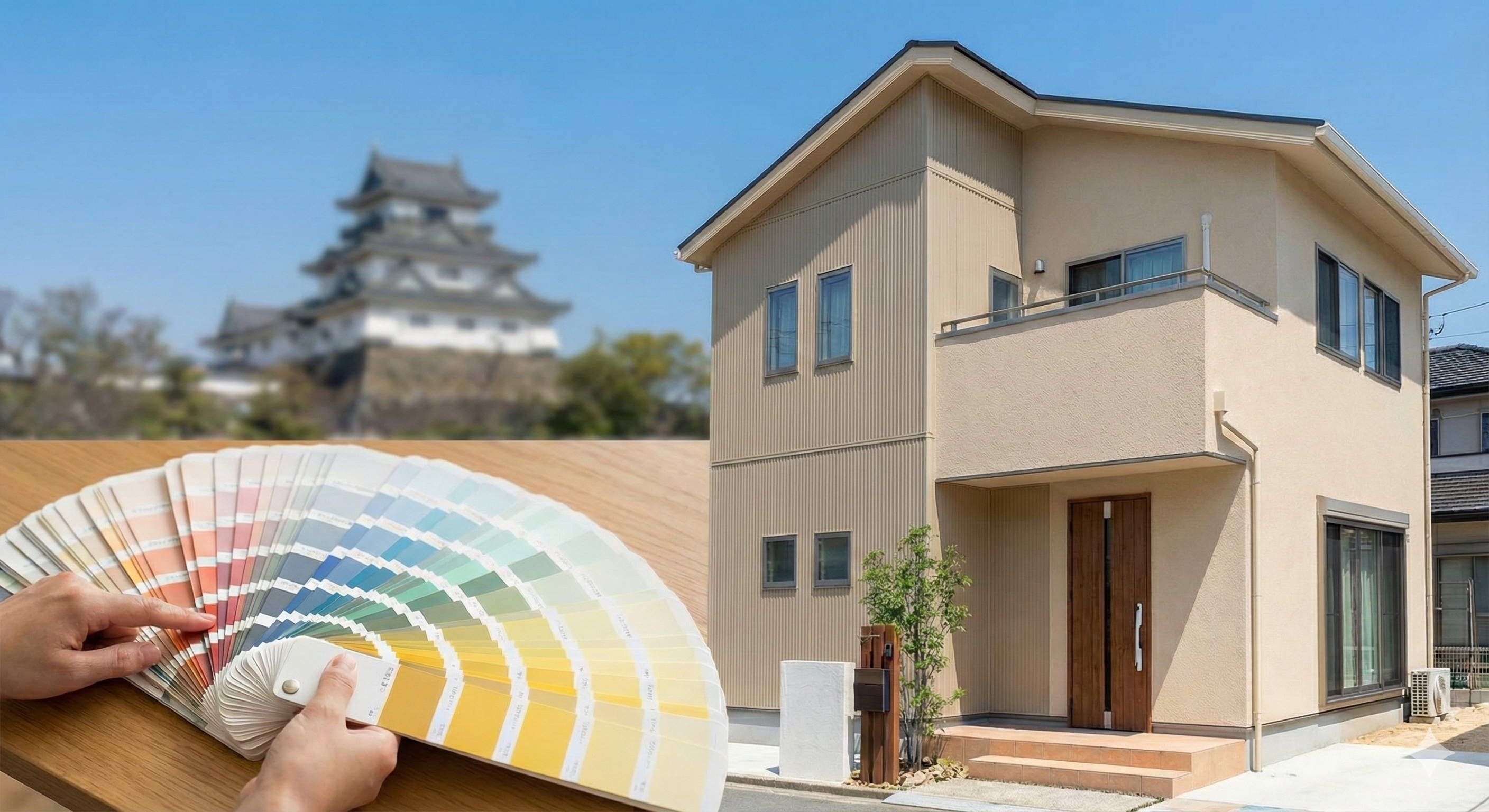 Gemini_Generated_Image_cdv5e4cdv5e4cdv5 公開日時:2025-12-21 | 2816 × 1536 (【和歌山市】外壁塗装でおしゃれな外観を実現するには?色見本帳の正しい見方と人気の配色トレンドを徹底解説)
