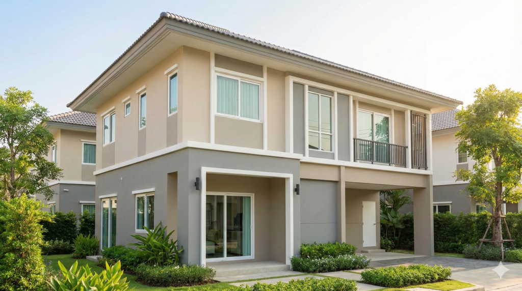 ベージュは、土や木といった自然を連想させる色で、温かく穏やかな印象を与えます。日本のどのような街並みにも自然に溶け込み、周囲の景観との調和を取りやすいのが最大のメリットです。クリーム色に近い明るいベージュから、ブラウン寄りの落ち着いたベージュまで色の幅が広く、好みに合わせて選びやすいのも人気の理由です。